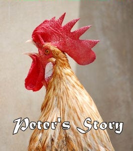 It is then that I notice that the crowd has gone silent. The gate has opened, and there stands Jesus, surrounded by guards. As the sun begins to peek over the hills, a rooster begins to crow. Jesus looks right at me, and I remember the words He spoke at our last dinner. “Peter, before the rooster crows you will deny me three times.” One of the soldiers smacks Jesus in the back with the broad side of his sword and Jesus is roughly pulled and pushed through the crowd.
